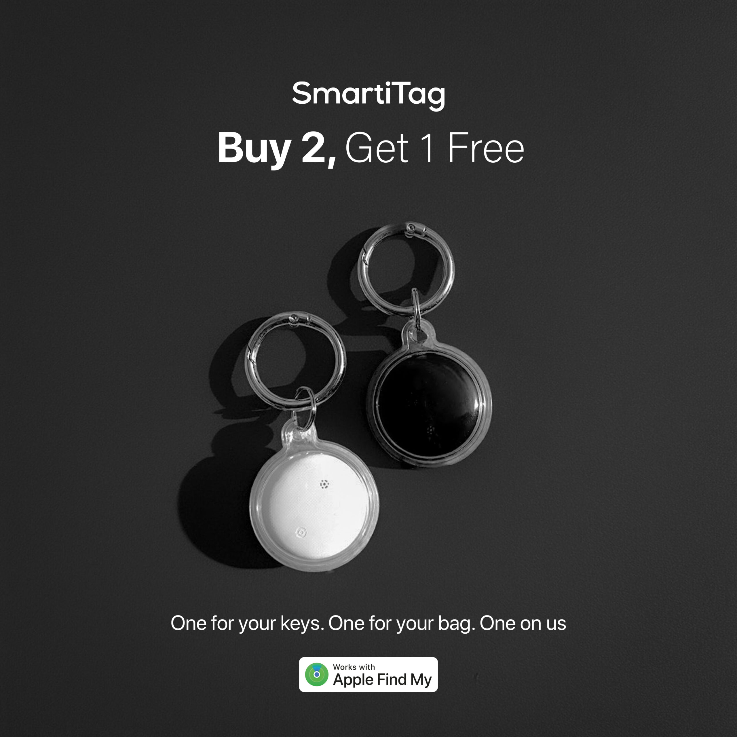 Introducing SmartTag – Your Ultimate Tracking Companion. Attach one to your keys, slip another into your backpack, and they instantly appear in the Find My app.